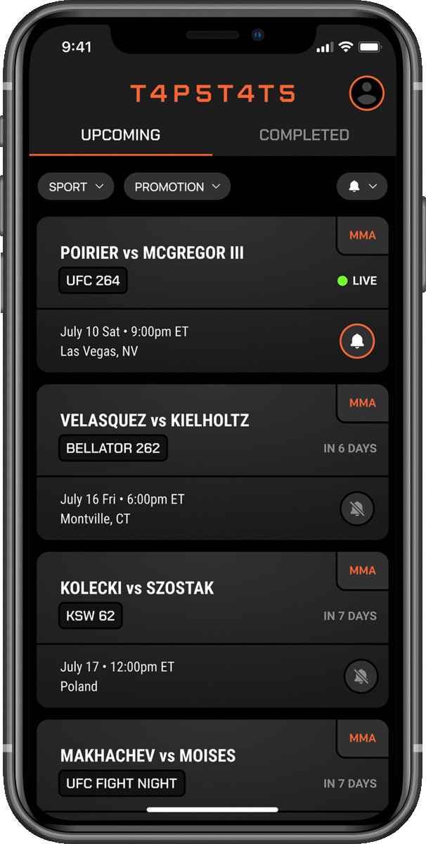 Browse the fight schedule to find upcoming MMA events from top promotions around the world.