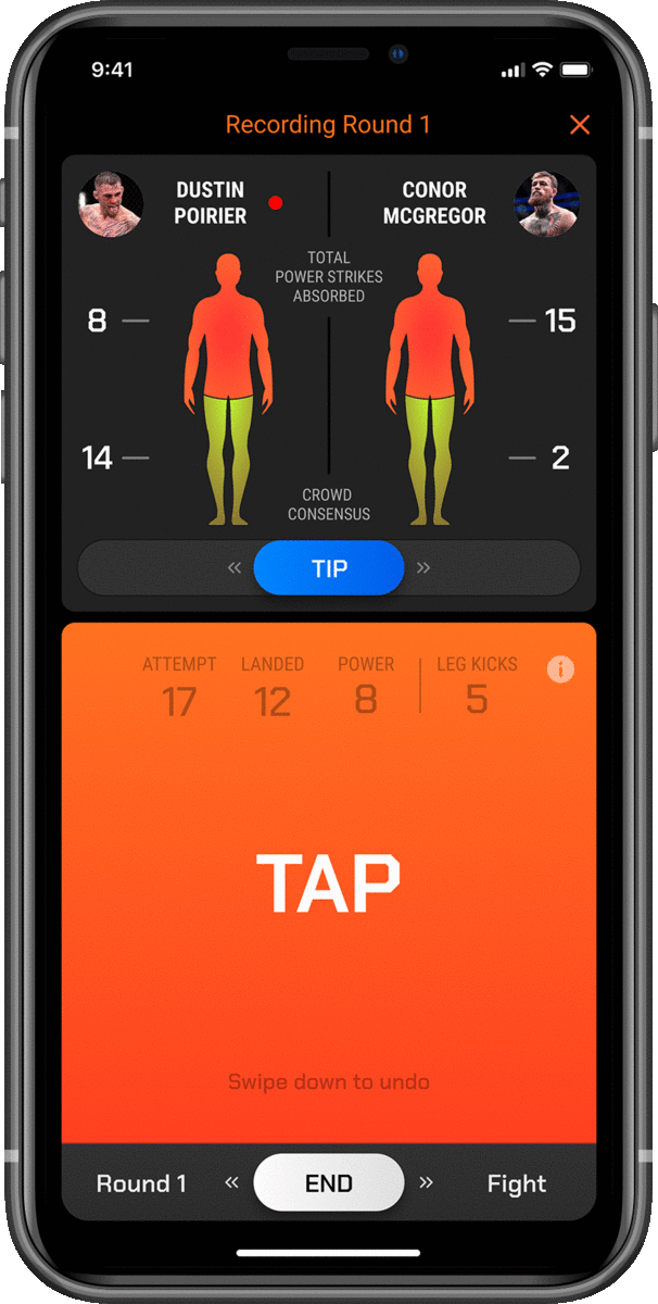 For the first time ever, play along with the live fight by precisely recording strikes on the tap gamepad.